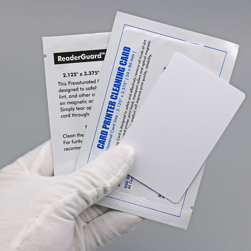 生产的CR80清洁卡采用PVC卡基与异丙醇(IPA)溶液,尺寸为标准CR80(与银行卡尺寸相同),能够广泛适配各种证卡打印机、ATM机、POS机等设备的卡槽,用于清洁维护保养,延长打印机使用寿命,提高打印质量。